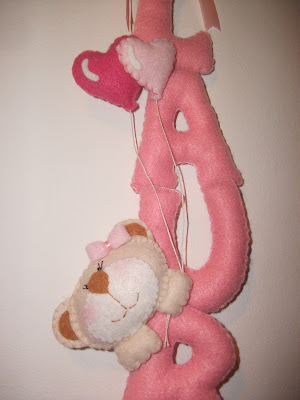 Enfeite de Porta de Maternidade - Nome em Feltro, pode ser utilizada na porta de maternidade e depois na porta do quarto do bebê, ou ainda como móbile para cortina, fica lindo também!!!!