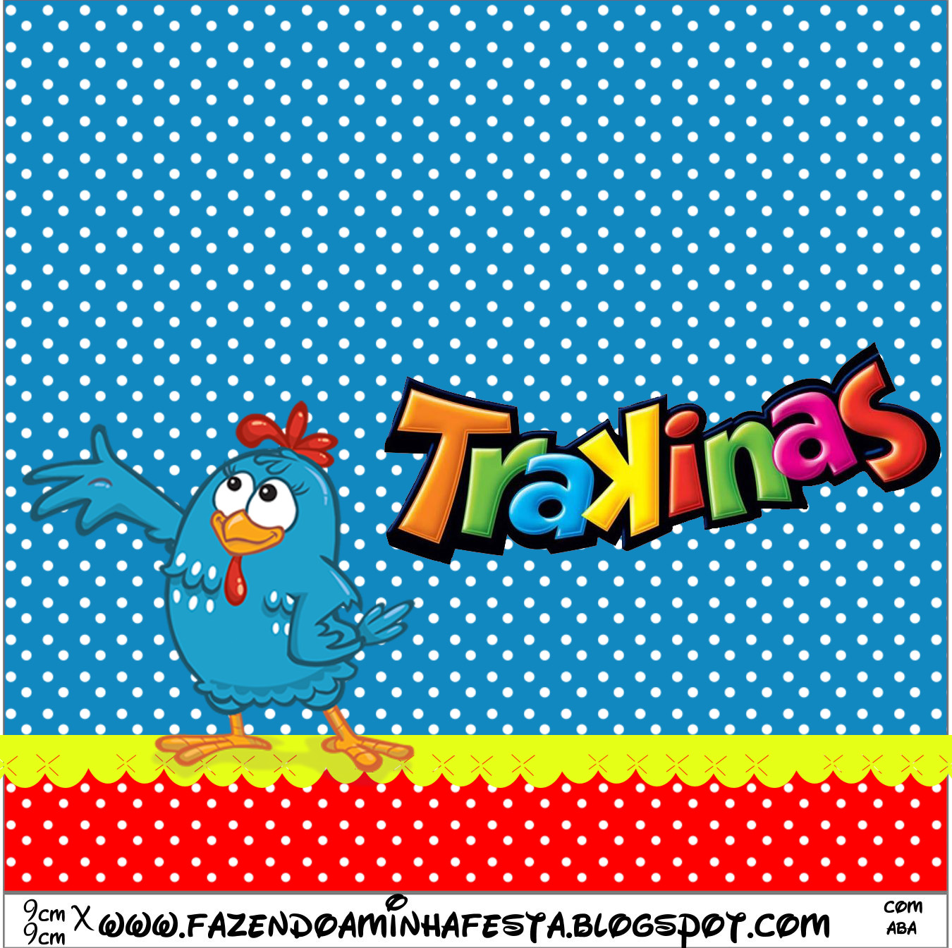Rótulo Mini Trakinas Galinha Pintadinha Vermelho e Azul Poá: